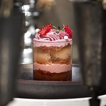繊細な技と上質な素材で仕立てたスイーツは、まるで光をまとった宝石のようにひとつひとつが特別な存在感を放ちます。鮮やかな季節の果実、華やかに重なる香りとテクスチャー。目に映る美しさだけでなく、心に残る味わいを追求した一品一品が、特別な時間を優雅に彩ります